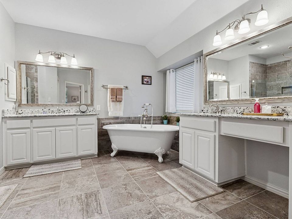 Welcome to 2323 Everton Drive - Your Dream Home in the Heart of Arlington. Discover this stunning 4-bedroom, 3.5-bath home located in one of Arlington's most picturesque communities and zoned for the highly sought-after Mansfield ISD. This beautifully maintained property combines comfort, style, and functionality - truly a home to love. Inside, enjoy vaulted ceilings, floor-to-ceiling windows, and plenty of natural light. The warm formal living room flows into a spacious dining area, perfect for gatherings and entertaining. The open-concept kitchen is a chef's dream, featuring granite countertops, stainless steel appliances, gas cooktop, travertine backsplash, and custom-built retractable storage shelves in every cabinet. The extended bar and cozy breakfast nook overlook the backyard as well as the family, creating the perfect comfortable open space for everyday living. Step outside to a resort-style backyard with a covered patio, flagstone flooring, and a wired Bose sound system. Ideal for grilling, dining, or relaxing outdoors under the Texas sky.The primary suite offers a peaceful retreat with a sitting area and views of the landscaped yard. The luxury ensuite bathroom includes a beautiful centerpiece clawfoot tub, walk-in shower, dual vanities, and a spacious walk-in closet with custom built-ins. Upstairs, you'll find three additional bedrooms, two full baths, and a large game room perfect for family or guests. A downstairs study with French doors provides a private home workspace or reading area. Enjoy top-tier community amenities - including a pool, clubhouse, playground, basketball courts, and scenic walking trails - all just a short walk away. Recent upgrades include a new roof (2023), new AC units (2024), and a new garage door and system (2025) - offering added comfort and peace of mind. Don't miss this exceptional home in one of Arlington's most desirable neighborhoods. Schedule your private showing today!