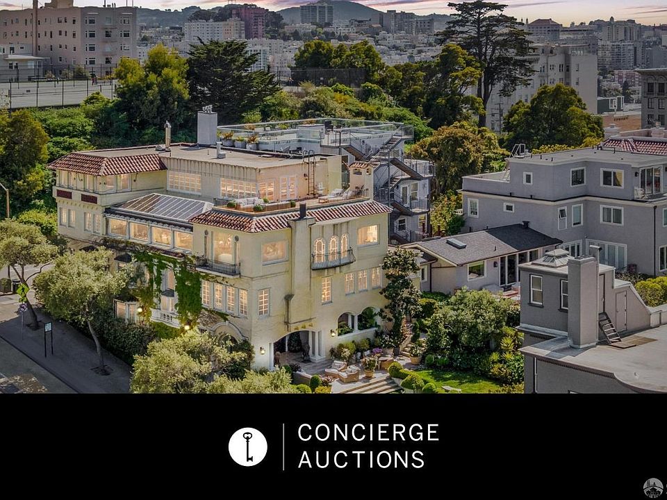 AUCTION BIDDING OPEN! Bidding ends October 10th. Previously Listed $9,980,000. Current High Bid $5,100,000. Showings by Appointment. Perched atop Hyde Street in esteemed Russian Hill, panoramic views of the sparkling Bay and Alcatraz stretch beyond the borders of this grand corner estate. The awe-inspiring mansion at 2323 Hyde Street was designed by renowned architect Willis Polk and built at the turn of the century with unprecedented size and scale. Multiple living rooms and entertaining spaces offer delectable water views. Alfresco entertaining is just as appealing from the unparalleled rooftop terrace. Marvel over the Bay Bridge, Golden Gate Bridge, the Bay, Alcatraz, Coit Tower, East Bay, and the endless downtown skyline of vibrant San Francisco. Below, the lush landscaped garden is a verdant oasis in the heart of the city. With six bedrooms and over 8,500 square feet, this magnificent estate is absolutely stunning even to the most discerning homeowner.