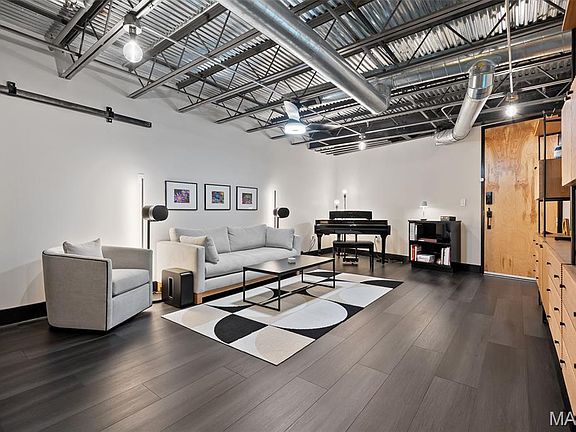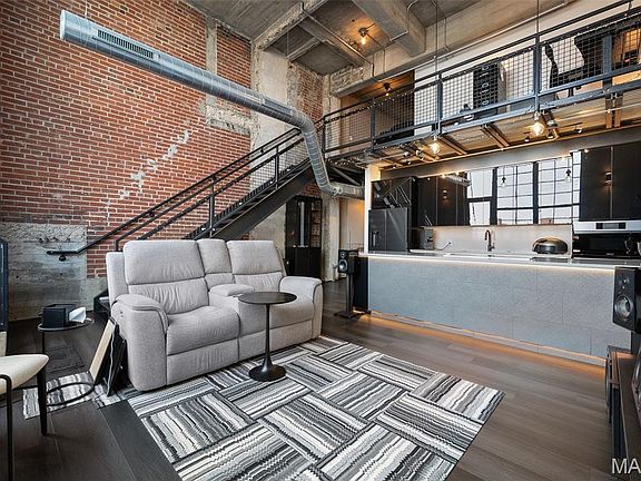 Modern luxury, upscale finishes & a surplus of inspiring views! This sumptuous multi-level loft comes in just under 2500 sq ft & has been completely renovated so you can bask in the mind-blowing finished product. Main level underwent an entire 2024 overhaul, starting w/the striking onyx LVP that covers the entire 1st fl creating a contemporary vibe w/robust functionality. A jaw dropping 2023 kitchen reno included premium Dacor appliances, sleek Omega Ricci high gloss black soft close cabinetry w/built-in utensil/spice drawers, elegant Cambria Menai Quartz counters, induction cooktop w/pop-up exhaust fan, massive 11.5’x3’ island & super smart controlled LED color changing strip lighting bringing the best in functionality & style. Stunning floor to ceiling windows provide an awesome backdrop & the formal living rm, family rm, bedroom suite & laundry complete the main. The ultimate office is perched on the mezzanine balcony & the palatial primary suite occupies the rest of the 2nd level. Both baths were gutted in 2024 & replaced w/spa-like glass enclosed showers w/bench seats, Toto toilets w/bidet outlets, new vanities & both bed closets include custom built shelving units. Private balcony, 2023 50g water heater & the primo TWO car parking in underground garage w/storage is sweet. Amenities include awesome rooftop community rm, pool w/stunning city views & front-row seats for fireworks. Vibrant Downtown West location near NGA, CITYPARK Soccer, Schlafly Tap Room, Top Golf & more!