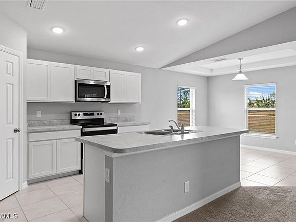 THIS IS A SHORT SALE TRANSACTION, Welcome to the house next to the Park! This stunning 4-bedroom home boasts over 1,800 sq. ft. of thoughtfully designed living space. The open-concept layout features cathedral ceilings and a gourmet center island kitchen—perfect for entertaining. Packed with energy-efficient features, this home includes a Lennox 15 SEER AC, PGT Low-E windows, solar panels, and a whole-house reverse osmosis system. The kitchen dazzles with stainless steel appliances, a big walk-in pantry, white cabinets, and sleek Moen fixtures. The master suite is a true retreat, featuring a walk-in shower, double vanity, private toilet room, and an oversized walk-in closet. Step outside to a spacious lanai, a low-maintenance concrete driveway, and an irrigation system to keep your lawn lush and green. Ideally located just half a block from the new Gator Trails Park, which is excellent for small gatherings, playing basketball or pickleball, and letting kids enjoy the playground. This location is only 4 minutes away from shopping and major roads, This home offers the perfect combination of style, convenience, and value. Don’t wait; set your appointment today.