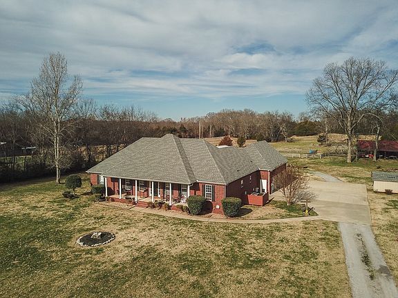 Well kept one owner home on over 6 private acres only 6.5 miles from I-24. 3 BR-2 1/2 BA + office + formal dining room and living room all on one level. Bonus up. Newer hardwoods, freshly painted, gas fireplace. Covered front and back porches with patio. Pool with refurbished wraparound deck. Barn with water/electricity. 3 car detached garage. Tractor shed. Working well. Fenced.