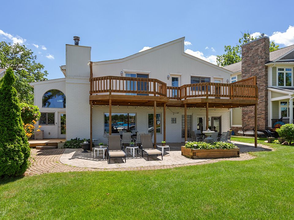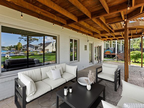 Lakefront propertyLuxurious front yardExpansive deckAbundant storageTwo generous living spacesLarge primary suitePanoramic sunset views