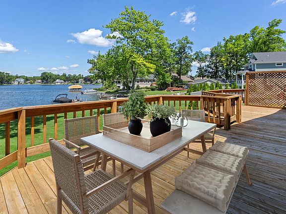 Rare opportunity on Wolverine Lake! Beautiful 82' lakefront property offering 4,140 SF, 4 bedrooms and 3.1 baths, 3-car garage. Enjoy panoramic sunset views, expansive deck and dock, and a true chef's kitchen featuring SubZero and Thermodor appliances. Two generous living spaces provide effortless entertaining, while the large primary suite and abundant storage offer comfort and convenience. Luxurious front yard to the shoreline makes lake life easy and enjoyable. Seller has priced this home at $929,000 to attract action-oriented buyers - an exceptional value for size, quality and location. Immediate occupancy available. Fast closing. Well and septic installed by Fettig. Hydrotech Boiler (approx 30 yo- with ave life of 60) and AC serviced by HvacPros. 3 zone thermostat for comfort. Underground sprinklers run with lake water. Household water provided by private well, and softened by owned filtration sysyem in the closet in the family room. Add'nl filtered water faucet in the kitchen at the sink and in the subZero, and Sanyo fridges. Landscape lighting is on a timer system. Crawl space access is in white louvered closet across from 2 fridge and laundry. Second stackable w/d in the primary suite with a pressing board and a suana. 3.5 car heated garage for hobbies, vehicles and toys. Two major professional renovations done since home was constructed- second floor and tower steps added and kitchen space added afterward with exterior access and "grill deck". Family room was originally a one car garage. In tandem with one of the renovations- 3.5 car garage was added.