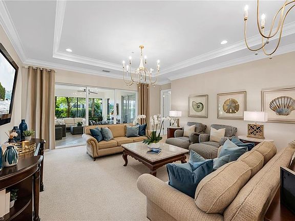 This beautifully refreshed coach home, situated in centrally located Grey Oaks Country Club, combines modern elegance with thoughtful design. Positioned on a desirable corner, the residence is filled with natural light from two sides and enjoys private views of water and lush landscaping, creating a serene backdrop for both everyday living and entertaining. The interiors have been meticulously refreshed, with walls, trim, shutters, and cabinetry fully repainted to create a crisp, contemporary aesthetic. New lighting fixtures and ceiling fans accentuate the updated palette, while LED lighting throughout enhances both style and efficiency. The floor plan offers 3 bedrooms plus a private office, along with 3 full baths and a half bath. The kitchen showcases refinished cabinetry with new hardware, Corian counters, and a stone backsplash, while the outdoor Kenyon electric grill with Taj Mahal quartzite counter makes al fresco dining effortless. A wrap-around lanai, ideal for entertaining or relaxing while enjoying private views, expands the living space and captures the essence of indoor-outdoor living in Naples. Offered furnished, the residence provides immediate access to the Grey Oaks lifestyle. Impact windows and doors, a tankless water heater, new roof this summer and a recently repainted 2-car attached garage underscore the home’s thoughtful updates. Located in Traditions, a natural gas community of Grey Oaks, this enclave is known for its welcoming spirit and vibrant community of neighbors. Life at Grey Oaks Country Club offers 3 championship golf courses, 2 stunning clubhouses, 3 restaurants, a resort-style pool, a 30,000 sq. ft. Wellness Center, plus pickleball, tennis, bocce, and a dynamic social calendar. Stylishly updated and beautifully maintained, this luxury coach home presents an exceptional opportunity to enjoy the perfect balance of sophistication, comfort, and effortless, low-maintenance living. Welcome home!