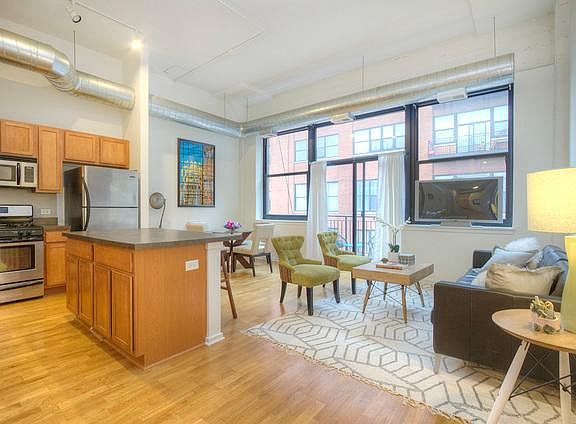 2323 W. PERSHING MCKINLEY LOFTS CONSISTS OF 163 RESIDENCES AND AMENITIES INCLUDE EXERCISE ROOM STUDY ROOM STORAGE LOCKERS AND BICYCLE STORAGE. BUILDING ALSO HAS A DOG RUN. LOCATED DIRECTLY ACROSS STREET FROM PARK RESIDENTS CAN ENJOY SWIMMING AND OTHER ACTIVITIES THAT THE PARK HAS TO OFFER. WITH APPROXIMATELY 1100 SQFT OF LIVING SPACE. THIS IS A ONE BEDROOM ONE DEN CONDO DEN IS BIG ENOUGH FOR QUEEN SIZE BED AND DESK 1.5 BATH KITCHEN HAS ALL STAINLESS STEEL APPLIANCES IN UNIT WASHER AND DRYER HARDWOOD FLOORS STORAGE LOCKER BIKE ROOM AND LOTS OF CLOSET SPACE FOR STORAGE. ENTIRE UNIT WILL BE FRESHLY PAINTED AND MOVE IN READY. RENT INCLUDES FITNESS CENTER HIGH SPEED INTERNET WATER AND DIRECT TV. MINUTES FROM DOWNTOWN WALKING DISTANCE TO ORANGE LINE JEWEL OSCO MCDONALDS KFC WALGREENS LA FITNESS CHOP SUEY RESTAURANT AND MCKINLEY PARK IS RIGHT ACROSS THE STREET. PLENTY OF STREET PARKING GATED PARKING ALSO AVAILABLE FOR ADDITIONAL 100 A MONTH. BACKGROUND CHECK AND CREDIT CHECK PAID BY APPLICANT. 18 MONTHS LEASE CONTRACT. FIRST MONTH RENT AND SECURITY DEPOSIT OF 1550 IS DUE AT LEASE SIGNING.