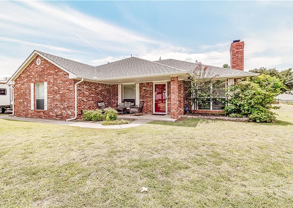 Well-maintained home on just shy of 2 acres located in Walnut Grove. Open concept living room and dining room with 9' ceilings share gleaming wood floors and a cozy gas fireplace. The kitchen features dark stained wood cabinets with plenty of storage, stainless steel appliances, and a breakfast nook with a view. The Master Bathroom has a double vanity sink and sky light. Storage cabinets line the hall. The covered back patio extends into an open patio with plenty of room to entertain guests. The back of the property is fenced and ready for livestock! The home also includes a Storm shelter, guttering, and a 7 year old roof that has a transferable warranty. Buyer to verify school.