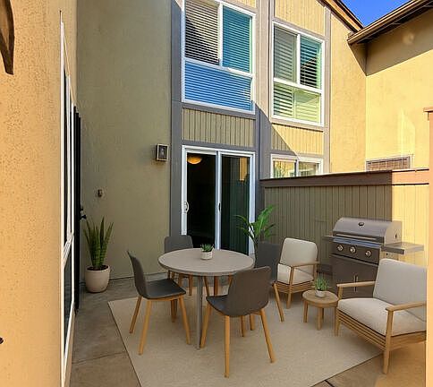 Delightful two-story townhome in the well-maintained gated community of Mariners Park Village. This home features two bedrooms and one full bathroom upstairs, plus a convenient half bathroom downstairs. The light-filled kitchen opens to a private patio through sliding doors, perfect for indoor-outdoor living. Two assigned covered parking spaces include generous storage. Community amenities include two pools, spa, playground, clubhouse, and BBQ areas. Whether you're a first-time home buyer searching for a place to call home or an investor looking for a solid opportunity, this home offers comfort, convenience, and value in a welcoming neighborhood. (Please note: Some photos have been virtually staged)