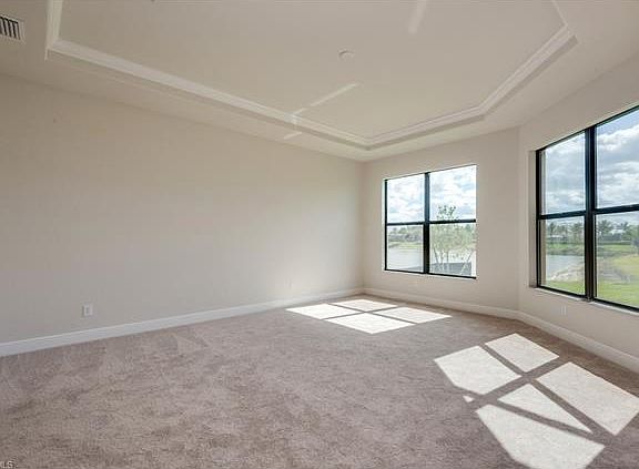This brand new, never lived in gorgeous Saranac model with builders warranty is located in Bonita Lakes. The 3 bedroom 2.5 bath home, plus a den has over 2500 sq/ft. with a lake view, and 2 car garage. The home has nearly $100,000 in upgrades to include a very large kitchen island that opens to an expansive great room providing a very open feel to the beautifully designed interior. Home also has impact windows and doors throughout. The home has large tile floors throughout the main living area, with carpet in the bedrooms. The nicely designed office/den has optional wood flooring. Bonita Lakes is a gas community so the gourmet kitchen is equipped with a gas cook top, and the screened lanai also has gas and water available for an outdoor kitchen. Bonita Lakes is conveniently located near Coconut Point Mall with quick access to shopping and restaurants. Bonita Lakes has numerous amenities to include a community pool and spa, gym, tennis courts, bocce courts, and clubhouse.This active community offers numerous social activities for interested residents. Don't miss this opportunity to live in one of the most prestigious communities in southwest Florida.