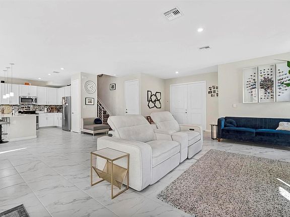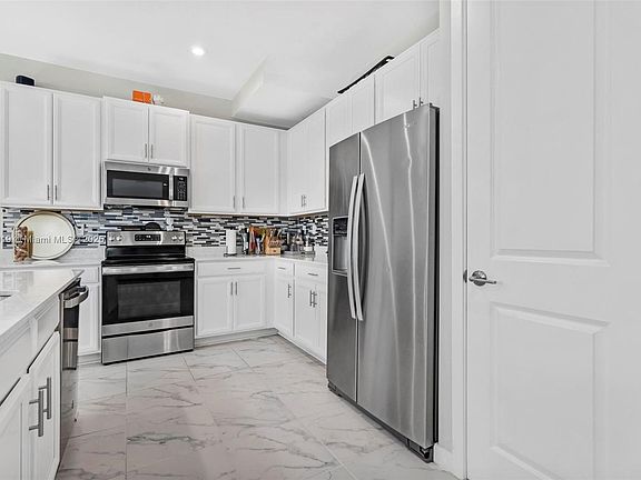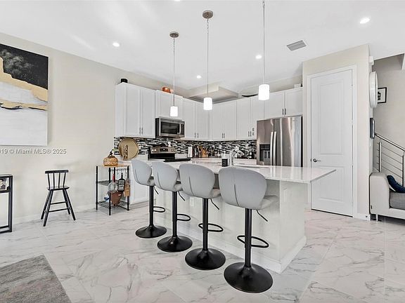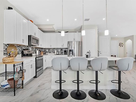 Modern 2021-built home with 4 bedroom, 3.5 bathrooms, and 3,000+ sqft. Features impact windows/doors, double garage with slatwall & storage cabinets- and a large yard with pool potential. High ceilings and abundant light fill the open living area. Includes a separate laundry room, walk-in closets with built-ins, and a master suite with his-and-hers closets, Roman tub, and spacious shower. Kitchen offers custom pull-out storage. Retractable patio awning adds outdoor shade & comfort. Located across from a park, 1 min from the turnpike, 3 mins from Cutler Bay.