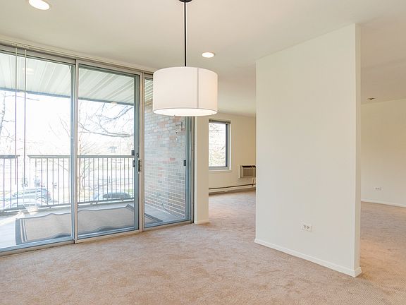 Spacious and open two-bedroom corner unit with large screened-balcony that overlooks Ackerman park and the tennis courts. Bright and sunny, with new carpeting, fresh paint, an eat-in kitchen with new oven/range and microwave (never even been used), separate dining room, spacious living room, and two good-sized bedrooms. Two storage areas, party room, located right near Central Street shopping (Great Harvest, Foodstuffs, Backlot Coffee), and short walk to the Metra. A must see!