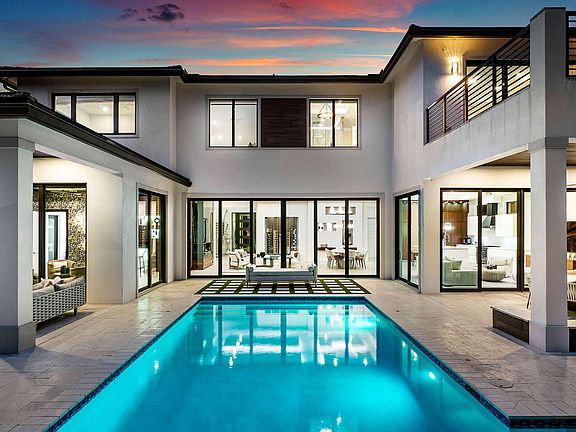 Introducing 2324 Date Palm Road, an architectural triumph by Primo Construction and Cosentino Architecture, located in the prestigious Royal Palm Yacht & Country Club. This extraordinary 2020 estate showcases Italian luxury craftsmanship, blending modern design with unparalleled attention to detail.The home embraces the outdoors with two covered terraces and seamless indoor/outdoor living. Floor-to-ceiling sliding glass doors flood the interiors with natural light and offer breathtaking views of the resort-style saltwater pool. This private oasis features a sun shelf, water sprays, and a spa, creating the ultimate retreat. The terraces are designed for entertaining, with a summer kitchen, built-in 48'' BBQ, stone fireplace, and mounted television. The home boasts six spacious bedrooms, a bonus room, seven full bathrooms, a family room, a media room with a sleek bar and, and Control4 smart-home automation, providing effortless control of cameras, lighting, music, climate, and pool settings. Premium finishes include imported porcelain floors, Pompei quartz counters, translucent pressure-treated stone walls, and custom Italian cabinetry and appliances. The open-concept design is both stylish and functional, offering an unparalleled sense of space and comfort.