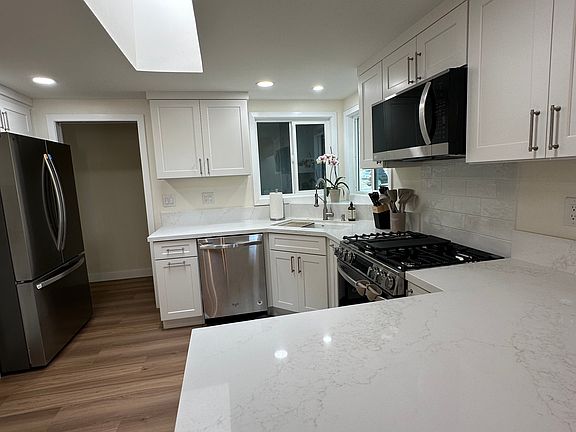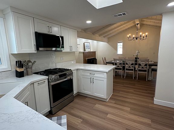 Newly remodeled spacious home with 3 beds 2 baths and a covered patio. All flooring, hardware, cabinets, and countertops are brand new. A complete down to the studs remodel. The kitchen includes stainless steel appliance as well as washer dryer in the garage. There is ample parking including garage, driveway, and street parking. The home is fully furnished and can stay that way for the duration of your lease.