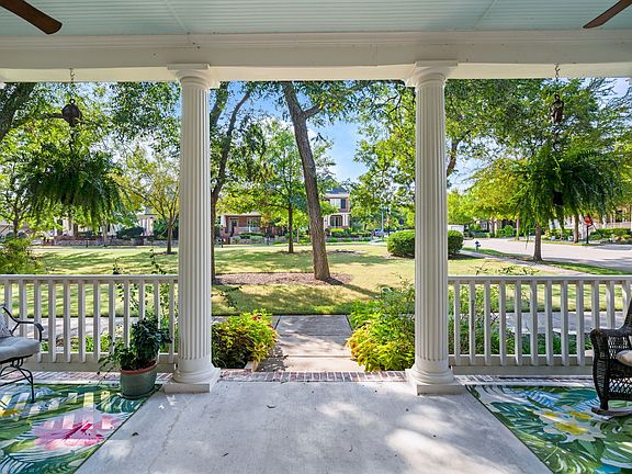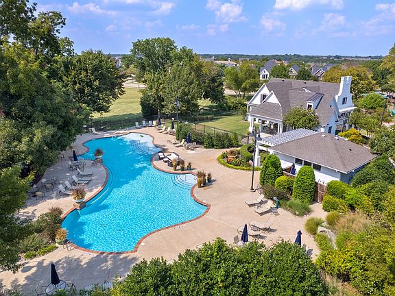 Fall in love with this charming, former model home in the sought-after Tucker Hill neighborhood. With storybook curb appeal, this 5-bedroom, 4.5-bath home sits on a corner lot on the ONLY street in Tucker Hill that enjoys one full acre filled with 100 year old pecan and oak trees as your front yard. Designed for indoor-outdoor living, every bedroom opens to a covered porch or patio, and the multi-level yard offers endless spaces to relax or entertain. Inside features a recently updated kitchen with Wolf gas range and quartz countertops, guest bathroom, and solid white oak hardwood floors. Open living with fireplace flows to dining and kitchen with built-in shelving. Upstairs, the luxe primary suite features dual vanities, jetted tub, and a separate shower, plus two guest rooms, media room, and game room. Rare casita with private entry, bath, and kitchenette is perfect for guests or multi-gen living. Zoned to Prosper ISD. Community includes a private dog park, pond, two children's parks and includes neighborhood events such as concerts at the fountain park and Saturday morning coffee on the porch.