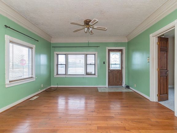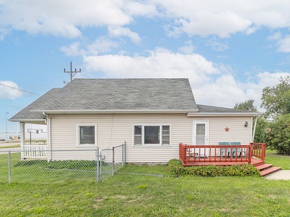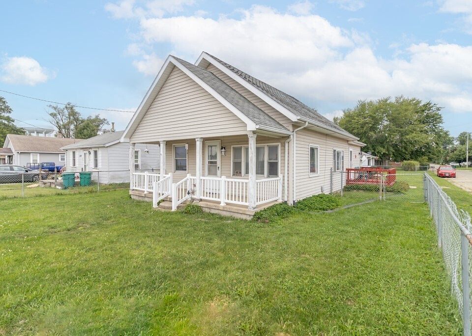 With just under 1000 sq ft this 3 bedroom, 1 full bath home is ready for it's new owners. Very large living room and dining room boast hardwood floors. The kitchen has ample cabinets for storage and a ceramic tile floor! The gas stove and refrigerator are included with the purchase. The laundry area is just off the kitchen and again the washer and dryer remain with the sale of the home. The front of the home has a fenced in yard and a beautiful covered front porch and deck in the back. There is a nice sized back yard with a 1 car detached garage. This home is on a corner lot as well.