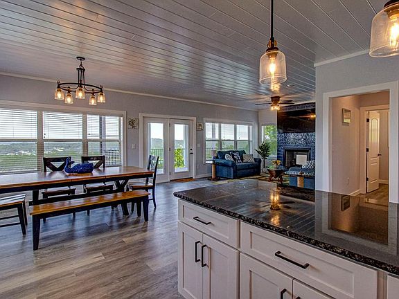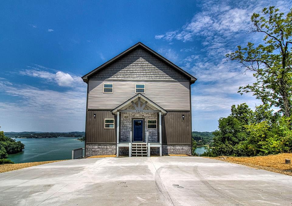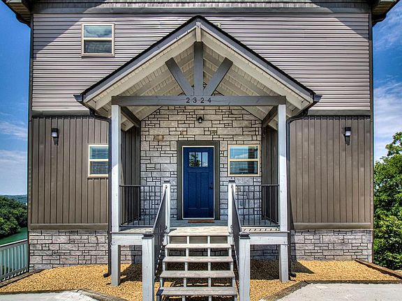 Wow! Beautiful 2bedroom/2.5 baths with incredible mountain and lake views. Main level with open floor plan kitchen into the living room. Kitchen with stainless appliances ,granite counter tops . Waterproof vinyl plank flooring thru out the cabin. Gas fireplace in the living room. Top level includes the master bedroom and bath, A large bonus room, deck. Basement includes bedroom room / bath and a deck. game room. You can enjoy lake views from all rooms. Hot tub on the Basement terrace. Gated and private community. The cabin will sleep 12 people. There's a fire pit just outside of the cabin. Great location and rental area......The top two floors have wood ceilings A REAL MUST SEE