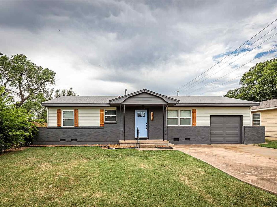 Witness an astounding transformation featuring new base trim, raised panel doors, exterior doors, windows, blinds, fixtures, faucets, lighting & hardware. Revel in the stunning kitchen showcasing sleek plank tile flooring, abundant cabinetry, butcher block countertops + a breakfast bar adorned with a white subway tile backsplash & stainless-steel appliances including a gas stove and side-by-side refrigerator. The home boasts contemporary decor with retextured walls and ceilings in a captivating blend of greige paint, white woodwork & dark re-stained original hardwood flooring in the living room, hallways, and bedrooms. The bathroom exudes a cosmopolitan vibe with its tile surround and updated plumbing fixtures and tub. Freshly painted exterior gives the home a chic modern look. Most of the plumbing beneath the house has been replaced with pex water lines and PVC sewer pipes. The HVAC system is 6 years young. Nice privacy fence, and there’s an in-garage floor storm cellar! Double car driveway which accommodates multiple vehicles and quick access to Fort Sill. For more information contact the listing agent, Lawrence Hargrave at 580-647-3245.