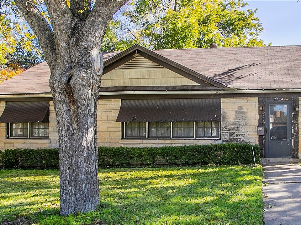 Impressive space and flexible floor plan in this charming home. Upon entry you are greeted in the formal dining/living area that is full of windows. This home offers hardwood floors under much of the carpeted areas. There are 2 bedrooms and a full bath in the main area. The kitchen offers built-in appliances, breakfast area and a pantry. Just past the kitchen is a wonderful den with built-in cabinets and a wood burning fireplace! Don't miss the 3rd bedroom with a full bath. This area is ideal for extended family, at home business or possibly the opportunity to lease out. There is a separate entrance area and could be locked off from the main areas. This home is filled with character and the charm of yesteryear. The lot is on a very low traffic corner and offers beautiful shade trees. Lots of space in this charming home. Buyer will need to verify all locations of the hardwood floors.