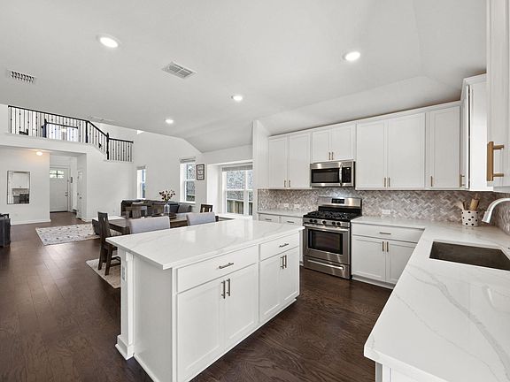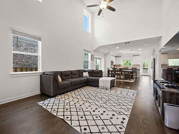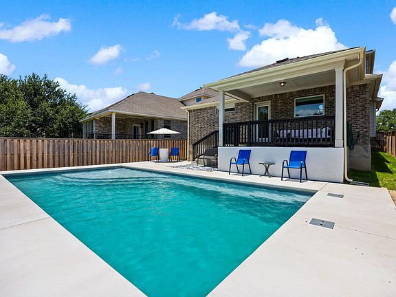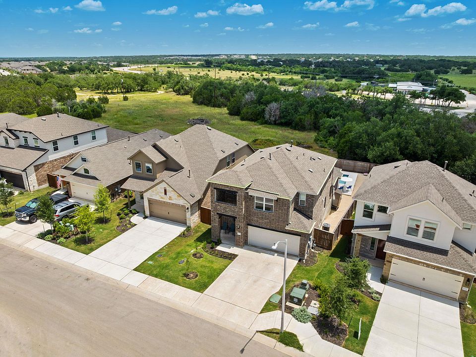Welcome to this stunning, like-new Brightland Home nestled in the highly sought-after Parmer Ranch community in Georgetown, TX! This thoughtfully designed home sits on a premium greenbelt lot and offers luxury upgrades without the added cost—including a sparkling in-ground pool, rich hardwood flooring throughout the main level, and high-end finishes. Make your way inside to an airy, open-concept layout featuring soaring ceilings and abundant natural light. The spacious living, dining, and kitchen areas flow effortlessly, creating a perfect space for entertaining or everyday living. The gourmet kitchen features sleek white quartz countertops, crisp white cabinetry, a stylish herringbone backsplash, a gas range, and a charming farmhouse sink with serene views of the pool and backyard. The main-level primary suite is a true retreat, offering privacy, space, and a spa-like en-suite bathroom with an expansive dual vanity, walk-in shower with bench seating, and a cozy window seat for relaxing. Upstairs, you’ll find a generously sized secondary bedroom that could serve as a second primary suite, plus two additional bedrooms and a full bath—ideal for family or guests. Wander outside to your private backyard oasis, where a resort-style pool with light features invites you to relax or entertain. A spacious concrete surround offers the perfect spot for sunbathing, while the lush greenbelt beyond provides added privacy and beauty. The large covered patio completes the outdoor experience, ideal for shaded lounging or weekend BBQs. Come see why Parmer Ranch is one of Georgetown’s most desirable communities. With thoughtful upgrades and meticulous care, this better-than-new home is ready for you to move in and start living the Hill Country lifestyle!