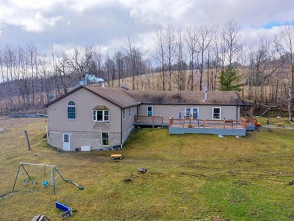 Check out this captivating private 23+ acres. Only 11 minutes from town and 20 minutes from the heart of Corning. On the property sits a 2- 3 bedroom home, a 4 car garage / Barn, a shed / Coop, a pond & food plots. In the home you will see a open floor plan, cathedral ceilings in parts of the home and some beautiful arched windows. Looking out the windows of the home you will see a big wrap-around deck.The best thing of all is the Stunning VIEW!