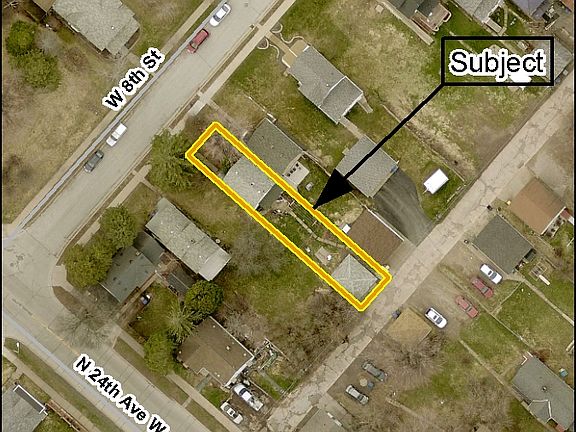 Available at Auction: tax forfeited land sale to be held on October 12 2017 at 11:00 a.m. at the Miners Memorial Building, 821 S. 9th Ave., Virginia, MN 55792. _____________________________________________________________ This 1 ½ story single family home is located in the Lincoln Park neighborhood of Duluth. The first floor features a full kitchen, living room, dining area and a half bath. The second story contains 2 bedrooms and a full bathroom. The accompanying 2 stall garage built into the hillside is in fair condition. There is no basement under this structure; only a small crawl space that contains utilities, water heater and boiler, conditions unknown. Any personal property remaining is part of the sale. These structures reside on a +/- 25’ x 140’ lot zoned R-1 (Residential). Contact City of Duluth Construction Services for permitted uses and zoning questions. Check with the City of Duluth Treasurer’s Office for details regarding a certified assessment in the amount of $1,031.82 that must be paid at time of sale, a future assessment in the amount of $261.03 that may be reinstated, and for any other certified, pending or future assessments that may be reinstated. Proof of insurance for these structures is required within 30 days if purchased under contract. Recording fee $46.00 (Abstract). _____________________________________________________________ Please see the Saint Louis County Tax Forfeited Land Sales website for disclaimer information. County Financing Available! 10% down at 10% interest for up to 10 (ten) years.