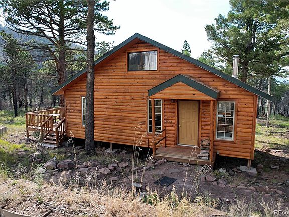 Welcome yourself to the Cabin Life, with this 1 bedroom/1bath, 3 season home situated on almost 2 acres, in GATED Forbes Park. Walking in from the front porch, you enter into the open concept living/kitchen/dining area, with a wood stove center stage to keep you nice and toasty. The kitchen has a small refrigerator, microwave, and a 3 burner cooktop, perfect for quick meals. The bathroom and main bedroom are on the lower level, making this a great option for those who prefer main level living. Just outside from the downstairs bedroom, the large side-deck will be your favorite spot to watch our incredible sunrises and sunsets from. Upstairs, the large loft, is currently set up as a multi-bed room with knee wall storage and built in divider, ideal for multiple guests. Sold fully furnished, you'll be packing clothes to come relax in no time. The owners currently come out to vacation a few times a year and easily winterize to leave. Keep everything as is or upgrade for full-time living in the future. Enjoy the blend of rustic charm with amenities including on-grid electric, fiber optic internet, private road maintenance, and trash removal. You'll find the peace and serenity you've been searching with elk, deer, and re-growing aspen peering back at you through your windows. Once you're ready to venture out, you'll enjoy exploring all of the local recreational spaces, including San Isabel Nation Forest connecting to the back of the subdivision. Great investment opportunity! Rentals allowed with restrictions.