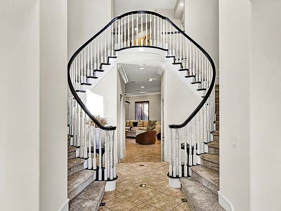 Welcome to this stunning and spacious home, where a grand two-story foyer and dramatic semi-circular staircase make a beautiful first impression. With 5 bedrooms and 3.5 baths, this residence offers incredible flexibility—including a main-level office that can serve as the fifth bedroom with huge walk-in closet. Enjoy elegant entertaining in the formal living room with fireplace and the separate dining room for your holiday dinners, or keep things casual in the oversized family room, also featuring a cozy fireplace. The huge kitchen is designed for both cooking and gathering, complete with a breakfast bar/island & a casual dining area just steps away from the family room with views of the peaceful Zen like backyard. There is also a cute powder room and access to the garage with built-in's. Second level has a substantial landing to display art and family pictures, the spacious primary suite with double doors offers a peaceful escape with two large walk-in closets, dual vanities, vast walk-in shower and a generous soaking tub. One of the secondary en-suite bedrooms includes an adorable bonus area behind French doors—perfect as a study nook, gaming/reading room, or vanity space. 2 other good size bedrooms along with a full bath with dual vanities! The convenient second-level laundry room features a sink and ample cabinetry. The third-level bonus room is a dream space—ideal for a gym, teen retreat, playroom, hobby room, or anything your lifestyle needs. The space also has a cute hideaway for kids that want their own little space. So fun! Step outside to a gorgeous private backyard designed for year-round enjoyment, complete with outdoor fireplace, BBQ bar, fire pit area, and fruit trees. Additional upgrades include tall baseboards, crown molding, recessed LED lighting, ceiling fans, fresh paint, new carpet, H2O softener & dual pre-filters, dual amplifiers (1 for exterior & 1 for interior surround sound) surround sound on 3rd floor & in primary bath, generator back up ready (transfer switches installed), automatic temperature controlled attic exhaust fan to eliminate attic heat, automatic exhaust fan in garage, new 75 gal H2O heater w/expansion tank, hose bib in garage hooked up to water softener to wash your car, new exterior landscape, lighting & irrigation, 2nd floor A/C is 5 years old and 3rd floor is 3 years, insulated garage door. This home truly has it all—style, space, & thoughtfully designed amenities throughout. Ready to welcome its next owners!