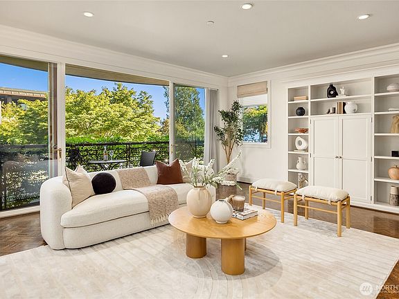 A Madison Park pedigree in a boutique 6-unit building. Custom built-ins, granite, Viking appliances, 2 gas fireplaces, lush primary suite with adjoining den, second bedroom, bathroom & laundry. Choosing this smartly dressed residence is a natural step for those looking for an easy-living lock & leave lifestyle. One elegant level of 1400sf, high ceilings deep mouldings, secure parking (2), pet friendly & the piece de resistance: a very private walk-out courtyard in the back for your outdoor entertaining & peony cultivating! Just steps to the park, the lake, all the tantilizing boutiques, coffee shops, salons & watering holes in the village. Freshly painted/new wool carpet! In a nutshell? A turn-key pied~a~terre for discriminating buyers.