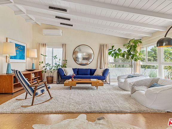 Come discover this mid- century 2 bedroom retreat home in the quiet secluded Silver triangle neighborhood of Venice Beach. Walking distance to the beach & Abbot Kinney Blvd cafes, boutique shops & eclectic dining. Everything is new including cork floors, Wolfe & Lieber fridge, Wolfe stove, custom cabinetry & heating/air. Limestone hand troweled plaster adds warmth & depth to the large open living, dining & kitchen area with vaulted ceilings & skylights. The bedroom doors open to a wood deck and grassy private backyard with 10 ft fence perfect for bbq's, growing vegetables and dining with friends.