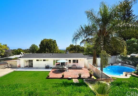 This 1/2 acre has a red barn, a separate pool, and the lot is all usable. Located in "Larga Vista" at the end of the cul de sac is this 3 bed/2 bath home with remodeled kitchen, hardwood floors, and the great room for living and entertaining. There is a walled front yard, 2 separate patios, and nice lawn area. The garage is being used as a bedroom and has a bath.
