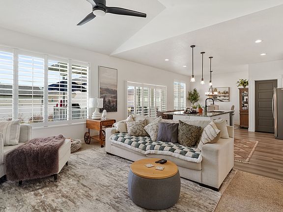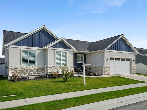 Priced to sell quickly! Seller to pay for a 2/1 buydown. Preferred lender to pay for a 1% buydown the first year. Contact agent for lender details. That means a potential 3% rate reduction the first year and 1% savings the second year, saving thousands for a buyer. Use your savings to get all new furnishings or solar panels or finish the basement. Absolutely stunning single family home with zero damage and it is less than two years old. Located in Eagle Mountain, just minutes from grocery stores, restaurants, and much more! It features 3 bedrooms and 2 bathrooms, with a deep 2-car garage, which is often not the case with these new builds, and room to expand into the basement for your gym to beef up in, or a pool table! You'll find all of the upgrades you would actually want like granite countertops throughout, with comfort-height sinks in the bathrooms. The primary bedroom ensuite includes a vaulted ceiling, double sinks, a walk-in shower, a separate soaker tub, and a walk-in closet. The vaulted ceiling and the open floor plan are perfect for entertaining! Plantation shutters are installed on all the windows and keep the home fresh and clean. The lot is fully landscaped and fenced (often a very unique feature in Eagle Mountain), with a huge covered deck with a pergola for hanging out, and is located in a community with no HOA, hallelujah! Most furniture is negotiable, but the seller is including the refrigerator, washer and dryer, and outdoor deck furniture. Move-in ready! Check it out now before it flies the coop!