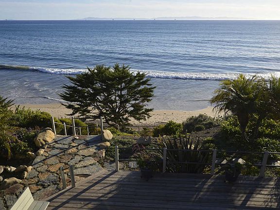 BEACH FRONT FURNISHED RENTAL - AVAILABLE NOW! BREATHTAKING BEACH HOUSE on private Summerland beach. 3 bedrooms, 3 baths total. Main house on the beach features two bedrooms, two baths, living room and family/media room, and EXPANSIVE OCEANS VIEWS throughout. Plus a full one bedroom, one bath GUEST HOUSE above the garage.