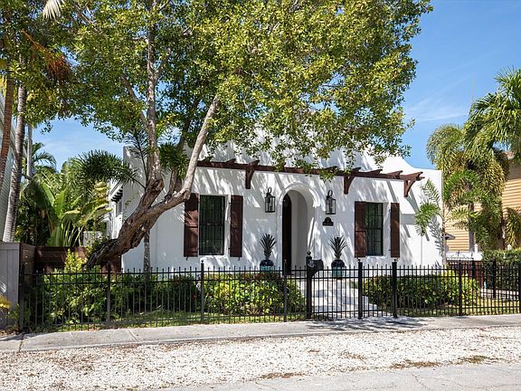 Recently transformed through an extensive renovation. More than a residence, this home is designed for privacy & entertaining and fully embraces the Key West lifestyle. Entering through the gated yard to the Coral Stone walkway and porch through the Arched Portico leading to the 10 ft arched Mahogany door. The foyer/library entry boasts black & white marble flooring and original Miami-Dade pine ceilings and Abalone Shell Chandelier. The 2 guest suites off the library/foyer feature king-size beds and ensuite bathrooms with custom double vanities. Eight ft mirrored French doors and black & marble floors continues into the open concept living spaces with a stunning expanded kitchen, living room and dining area. The space is grounded by an 11 ft quartz waterfall island,Mother of Pearl backsplash and high-end appliances. Fully folding glass walls extend from the kitchen to the well-designed outdoor living spaces dramatically extending your entertaining venue & creating a seamless transition. The spacious Master Suite epitomizes the tropical ambience with a dramatic vaulted bamboo ceiling with a double Fanimation Fan. Master Bath boasts a walk-in closet, Stainless Steel soaking tub, large rain head shower and double vanity. The grey marble floors and wall accent the spa ambience. The Master Suite also features the sliding glass pocket doors extending to the Brazilian hardwood decking surrounding the spacious pool and spa. The Brazilian decking and steps lead to a space that meets diverse needs as an office, pool house or addition guest room with 1/2 bath and charming outdoor shower. The home also features a 14 x 20 single care garage which is hard to find in Key West. Ample parking for 2 vehicles in front of garage. Each element harmonizes to create an indoor- outdoor living experience that seamlessly blends with the laid-back elegance of Coastal Living. The block is a charming street with longtime residents that are delightful neighbors. Owner-Agent