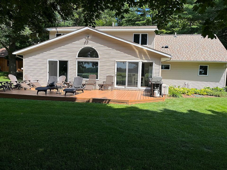 Sanford Lake front, sunset awesome, in Village of Sanford, on large treed lot. Home remodeled. Pole building 32' X 48'. Two garage doors one 13' tall. Electric in building 100 amp. Water hydrant outside door. Large lake front lot 90' by 600' approx.