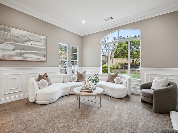 Nestled in the prestigious and tranquil Country Estates, this exquisite 5-bed, 4.5-bath home offers an unparalleled living experience. Situated on a quiet cul-de-sac, it boasts breathtaking views of lush greenery and a picturesque vineyard. The expansive backyard is an entertainers paradise, featuring a meticulously designed hardscape and landscape, a full outdoor BBQ area, and a stunning waterfall cascading into a sparkling pebble tech pool with a separate 8-person jacuzzi. Inside, the home shines with fresh interior and exterior paint, new sinks and faucets, updated recessed lighting, and new carpet downstairs, on the staircase and much more. Oversized windows bathe the space in natural light, while elegant wainscoting, hardwood flooring, tile flooring, and graceful archways add timeless sophistication. The gourmet kitchen is equipped with high-end appliances, brand new wine refrigerator and a cozy fireplace creates a warm ambiance. A newer dual HVAC system ensures year-round comfort, while two staircases lead to a spacious loft. Additional features include a whole-house water softener, a 44-panel leased solar system, and a 2.5-car garage with a workshop area. With no HOA and located in a top-rated school district, this home perfectly blends luxury, comfort, and convenience.