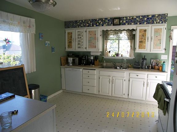 A perfect in town location. 3BD 1BTH rambler on flat sunny lot close to trails, park, busline, schools & shopping. Open floor plan w/large LR & Dining area, spacious ktchn w/eating area, wood flrs in dining area & master, & even a space to put a work station. Detached 2 car garage wired for 220 for workshop, toys, or hot tub, & additional storage up top. Fully fenced back yard w/ample room for gardening & enjoying the summer evenings. Rain Barrels & Chicken Coop too. A great place to call home. $190,000