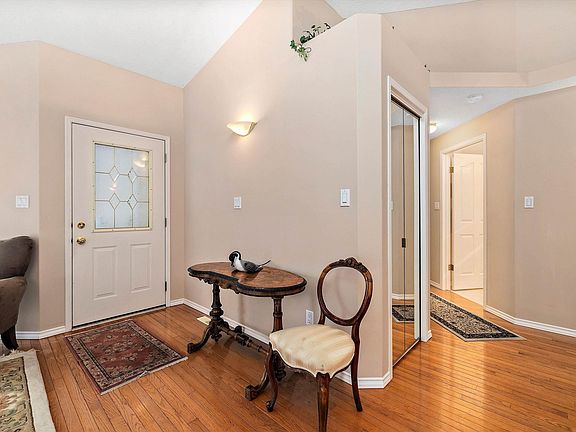 This impeccable RIVERBEND bungalow in Riverside Common delivers ADULT, MAINTENANCE-FREE living at its absolute finest! Tucked into a quiet keyhole and backing onto Dry Creek Park, it offers mature trees, peaceful views, and exceptional privacy. Inside, you’re greeted by soaring VAULTED ceilings, a sun-soaked south-facing living room, and an inviting open-concept kitchen—perfect for Christmas gatherings or cozy evenings by the TOASTY fireplace. Enjoy summer BBQs on your beautiful private deck, then retreat to an ENORMOUS primary suite complete with a walk-in closet and a wonderfully functional ensuite. The DOUBLE attached garage adds comfort year-round, and you’re only steps from transit, a pharmacy, the recreation centre, and the stunning river valley. With quick access to Terwillegar Drive and the Anthony Henday. This private oasis blends convenience with serenity—your ideal next chapter awaits.
