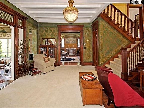 LAKEWOOD Mini Estate with Coach House overlooking the Emerald Necklace and glorious sunsets! A historic jewel with soaring ballroom ceilings and Waterford chandeliers. Walk into the stunning light filled gracious parlour and through the double wrought iron gate to the breathtaking architectural details include glistening leaded glass windows and rich mahogany throughout. The Carriage House has a finished one bedroom apartment.