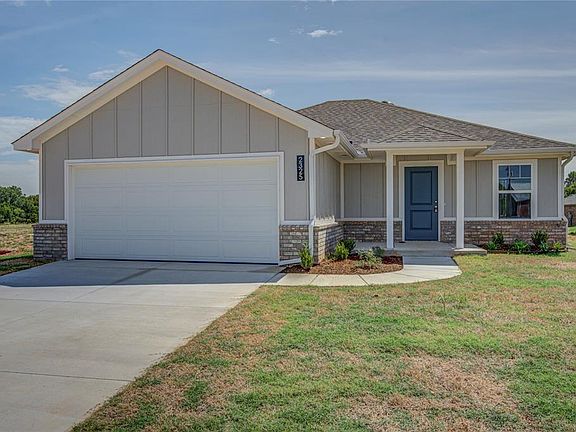 ***$5,000 TOWARD BUYER'S CLOSING COSTS, FENCE, OR OTHER UPGRADES***This charming 3-bedroom, 2-bathroom home offers 1,208 square feet of comfortable living space that's perfect for anyone looking to settle into a welcoming neighborhood. The heart of the home features a spacious living room with ceiling fans to keep things cool, while the kitchen comes equipped with sleek stainless-steel appliances and custom cabinets that'll make meal prep a breeze. You'll love the modern wood-look ceramic tile flooring that runs throughout the home, giving it a warm, contemporary feel without the maintenance headaches of real hardwood. Each bedroom includes ceiling fans for year-round comfort, and the programmable thermostat lets you control the climate with ease. The exterior showcases beautiful 75% brick construction that adds both curb appeal and durability. The landscaping is already done for you with a full sod and landscape package, so you can enjoy a picture-perfect yard from day one. Partial guttering helps protect your investment, while the high-efficiency heating and cooling system keeps utility costs manageable. Tech-savvy buyers will appreciate that the home is pre-wired for solar panels, making it easy to go green whenever you're ready. The 10-year structural warranty provides peace of mind, and access to the neighborhood pond adds a touch of natural beauty to your daily routine. This well-appointed home combines practical features with thoughtful upgrades, creating a space that's both functional and inviting. Whether you're entertaining friends or simply relaxing after a long day, this property offers the perfect blend of comfort and convenience in a friendly community setting.