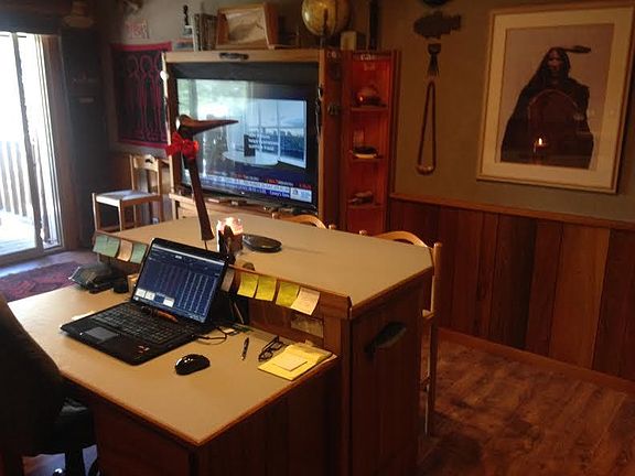 Queen bedDeep field of channelsOuter deckRecliner rockerFireplace areaFull kitchenDish washer