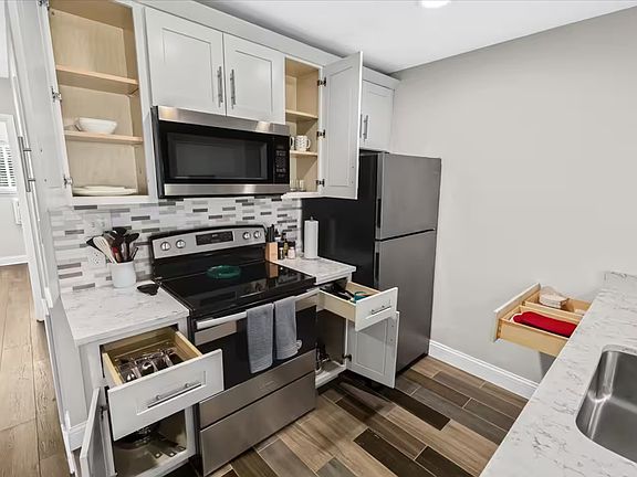 - Exterior features: Bicycle storage, Cameras, Courtyard, Flooring: Laminate, Gas included in rent, Heating: Electric, High-speed Internet Ready, Lawn, One Year Lease, Online Maintenance Portal, Online Rent Payment, Safe, Sitting area, Stainless steel appliances, Utilities fee required, Water included in rent