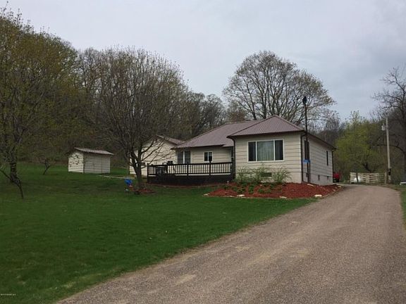 One-level living in a beautiful location with great views of the river! Almost 1.5 acres for you to enjoy with recreational activities, outdoor time, and all the wildlife you could want! The property sits at the base of the bluff with several acres of parallel state land and tons of privacy! The house has a newer roof and appliances, and a heated oversized two-car garage! This property is the
