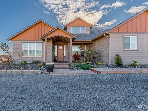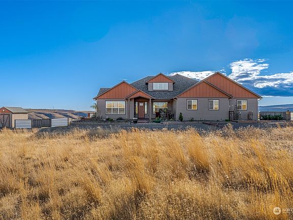 Incredible home built on 45+acres with an unobstructed view of the Columbia River and mountains to the west. This open floor plan features a beautiful kitchen with a double oven and gas range, granite featured throughout the kitchen. Oversized granite topped kitchen Island adds to the functionality of this food preparation area. This home has a primary bedroom with attached bathroom that includes a soaking tub and walk in shower. Two additional bedrooms, an office with an 18 foot ceiling. A bonus room adds for a quiet location to enjoy your favorite book. 2.5 bathrooms. This home has abundant windows to take in the wonderful views. A large attached 3 car garage with soft water system. 24X36 shop, insulated with heat.