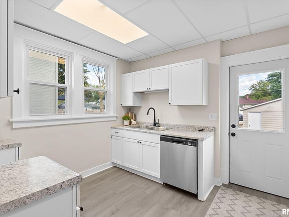Stylish coffee barLiving and sunroomLarge updated upper-level bathroomNew dishwasherCovered front porchBrand-new kitchenNew flooring