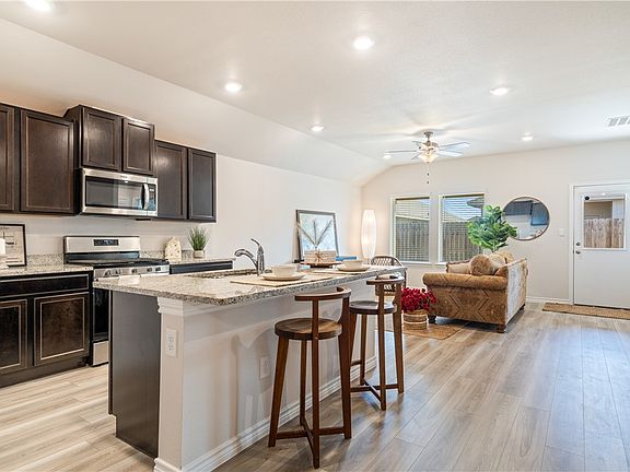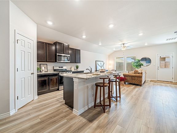 Welcome to this pristine 4-bedroom, 2.5-bath home that is only one year old. This well maintained home offers modern style, effortless living, and is located in Flour Bluff ISD. With 1,823 sq. ft., this open-concept floor plan features luxury vinyl plank flooring throughout—no carpet anywhere. The kitchen is beautifully finished with granite countertops, Whirlpool stainless steel appliances, and a gas range/oven, making it ideal for everyday cooking or entertaining. The primary suite includes a tile walk-in shower, double sinks, and a huge primary closet. The laundry room has a gas dryer connection for added convenience. Outside, enjoy the covered back patio overlooking a small, easy-to-maintain yard—perfect for low-maintenance living. Just minutes from NAS-CC, TAMU-CC, and H-E-B, Plus, this home has been very well cared for and is move-in ready.