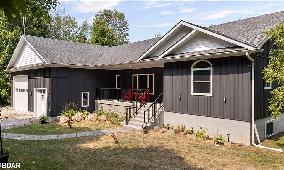 Stunning 2021 custom-built raised bungalow on 0.56 acres, just 7 minutes to the charming town of Coldwater and 15 minutes to Orillia & its convenient shopping & restaurants. Offering approx. 1,750 sq. ft. above grade plus a fully finished lower level of the same sq footage, this meticulously maintained home is loaded with premium features. The impressive 1,100 sq. ft. attached garage with in-floor heating, 20 ceilings, 8 and 14 bay doors, and drive-through access is ideal for car enthusiasts, trades, or hobbyists. The bright, open-concept main level boasts soaring ceilings, an upgraded kitchen and large windows framing serene country views. The finished lower level, also with in-floor heat, provides additional bedrooms, bathroom and spacious living space. Mechanical excellence includes an ICF foundation for efficiency, full home water treatment system (UV, softener, filtration) & a whole-home Generac generator capable of running the entire property with automatic weekly self-checks. Multiple purification systems ensure top-quality water & the 200-amp service supports all modern needs. Enjoy abundant local wildlife including deer and pheasants, and explore the Simcoe County Forest Moon Track directly across the road - perfect for hiking, bird hunting, and nature walks. The Coldwater community offers an arena, grocery store, LCBO, beer store, hardware stores, restaurants and more. With its high-end construction, thoughtful upgrades & proximity to both amenities and nature, this property offers an exceptional opportunity to enjoy the best of rural Simcoe living with modern comfort and convenience. This property is more than a home - its a lifestyle, blending high-end construction with the tranquility of country living, yet minutes from everything you need. This home truly needs to be seen to be appreciated. View video below and then book your in-person viewing!