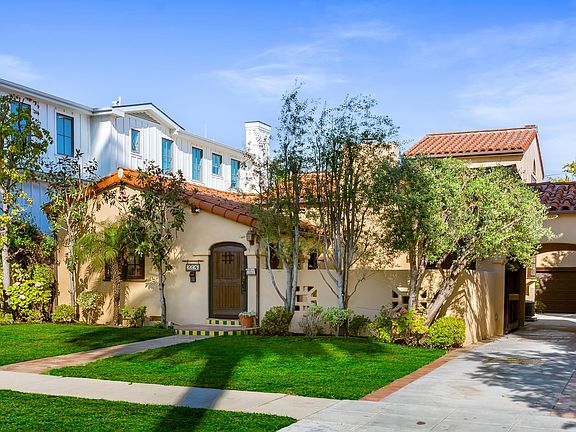 Beautifully updated Santa Barbara Courtyard 4 bed/2.75 bath 2-Story Spanish with incredible thought and detail in design and expanded floor plan, complimenting the unspoiled charm of the original character throughout. Inviting tiled front courtyard with gate opens to living room with dramatic barrel ceiling, chic wood paneled wall, fireplace with original tile design hearth, wood mantel, wall sconces and double French doors opening to front courtyard. Formal dining room with coved soffit ceiling opening to remodeled open sun-filled kitchen with stainless steel appliances including 6-burner Thermador range/oven, updated cabinetry with pantry cabinet and pull out drawers, desk workspace and breakfast nook opening to spacious family room and to the entertainer's backyard with covered back patio with archways and paver tiles to beautifully tiled backyard to create seating areas with outdoor built-in barbecue with counter covered with retractable awning, and gated driveway. 3 bed/1.75 bath downstairs, with 2 of the bedrooms including beautiful built-ins. Upstairs is the primary suite quarters with vaulted ceilings, treetop and Century City views, fireplace, 2nd laundry area, 2 custom-finished closets including a walk-in closet. Beautiful primary bath filled with natural light, dual basins, separate bath and shower and skylight. Additional features include archways, custom tiled bathrooms, hardwood floors, central ac/heat, Laundry area upstairs and downstairs, porte cochere and auto-gated driveway. Close proximity to Westwood Blvd. & Pico Blvd. restaurants and retail, Westfield Century City Mall, UCLA & Beverly Hills. Westwood Charter School.