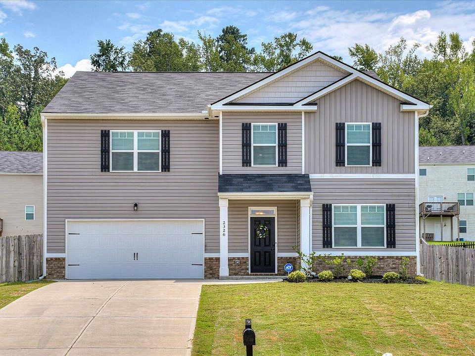 This beautiful home offers 3268 SQ feet, 5BD, 3BA, and double car garage. This incredibly open plan offers separate formal dining and or office & expansive great room. There's an abundance of cabinets, backsplash, and granite countertops to create your next tasty recipe in this roomy kitchen sporting an island. You can easily interact with family and or guest as it overlooks the breakfast room and great room This floor plan is perfect for entertaining large groups. This over sized owner's suite is amazing! Upstairs allows for a possible second great room, office, toy room, or whatever fits your needs. Owner's bath boasts garden tub with a comfy back rest. An oversized walk-in closet, separate shower & dual vanity completes this retreat. All secondary bedrooms are sizeable. Location is an easy access to Fort Gordon, shopping, medical, golfing, schools, and parks. Privacy fenced lawn includes a sprinkler system. NO HOA on this home!!!!!!!!!!