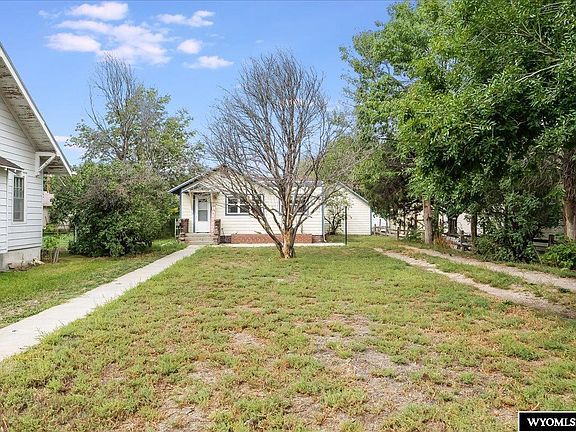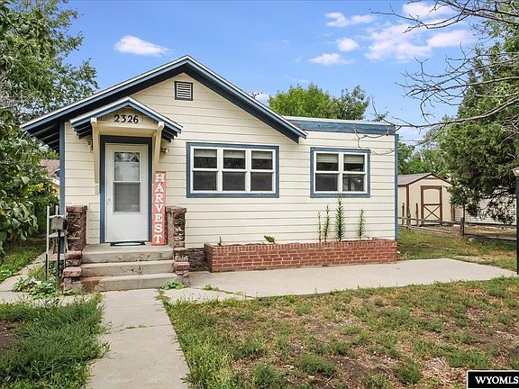 This property would make a great Air BNB, first time home or retirement home. This delightful 2-bedroom cottage seamlessly blends classic architectural character with modern updates. Nestled in a peaceful neighborhood, it features a dew door, newer windows, siding, and roof and an updated sewer line, ensuring energy efficiency and lasting peace of mind. This home is insulated well giving you low utility bills. The spacious living and dining area invites natural light, offering ample room for entertaining or relaxing with family. The large kitchen and new gas stove/oven, caters to all your culinary needs, while the unfinished basement, with interior and exterior access, provides additional storage or potential for future customization. This property boasts a large 7000 sq ft lot with an underground sprinkler and a convenient oversized 1-car garage offers secure parking and extra storage space. There is plenty of room to build a shop or build on to the home. Schedule your viewing today and experience the warmth and comfort of this lovely home! Text Suzanne for your private tour. 307-715-0217
