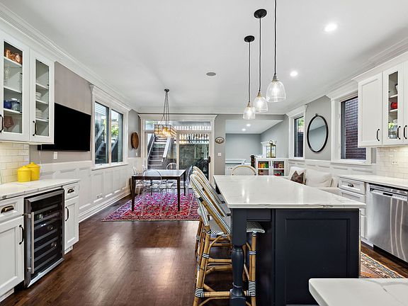 Stylishly renovated single-family home on a beautiful tree-lined street in the heart of Bucktown. This pristinely maintained move-in ready residence of over 3,300 square feet has all the must-haves for 2022 city living: a rooftop deck for entertaining and a spacious lower level rec room/family room with two additional bedrooms that can serve as a home office or gym. Beaming with rich character detail, the home offers five bedrooms, three and a half baths and comfortable yet elegant living spaces that are flooded with sunlight from the front windows and skylights. Effortless flow is achieved from the living room to the back of the home, where a gourmet kitchen with large island opens seamlessly to a large dining and sitting area. The kitchen has been completely modernized with timeless sophistication, blending all high-end Bosch appliances, quartz countertops and designer finishes in a classic white-and-black color palette. Right off the dining area is an outdoor space, which leads to the rooftop deck over the garage with a newly added pergola and allows for easy indoor-to-outdoor entertaining. Residing upstairs are three bedrooms, including a gracious primary suite that prioritizes serenity with a spa-like bath, walk-in closet and private terrace with access to the rooftop deck. A fully finished lower level gives the family or guests plenty of space to spread out- curl up in front of the fireplace in the living room or set it up as a game space, plus two bedrooms offer endless flexibility as life changes. The next owner will also have peace of mind, since the building was tuck-pointed and sealed in 2018 and an all-new dual-zone HVAC was installed. A two-car attached and heated garage is another added convenience. Best of all? You can walk to Holstein Park, public transpiration, schools and all of the Bucktown favorites - The Charleston, Chef's Special Cocktail Bar, and the city's hippest restaurants from Etta Bucktown, Club Lucky to Urbanbelly and Tricycle Chicago. A rare single-family oasis in the city!