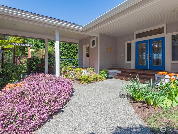 With over 5,300 square feet of living space spread over 2 levels, this thoughtfully designed custom home has stunning views of Puget Sound and the Cascades from most rooms. Covered decks on both levels provide a great outdoor area to take in the views and entertain guests. Main level living area includes beautiful hardwood floors, custom built-ins and trim plus 2 primary suites, office, formal dining rm., powder rm. and laundry rm. The lower level has a 3rd bedroom, full bath, rec. rm, wet bar, flex rm, 2nd office and storage. This home is ideal for working from home and is adaptable for multi-generational living. New whole house generator (2023). Over 3/4 Ac. lot. Wired detached workshop. Please see Virtual Tour.